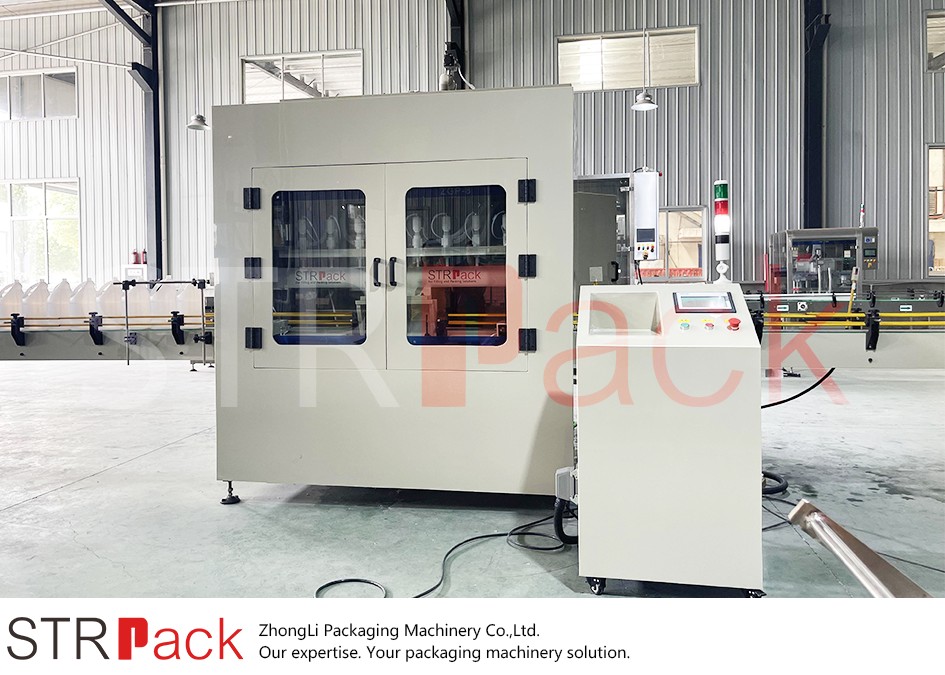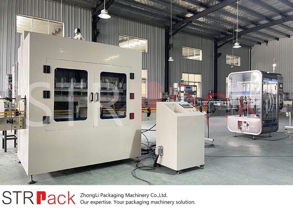 This STRPACK anti-corrosion filling and capping line is specially designed for strongly corrosive liquids and products that cannot contact metal during filling.
