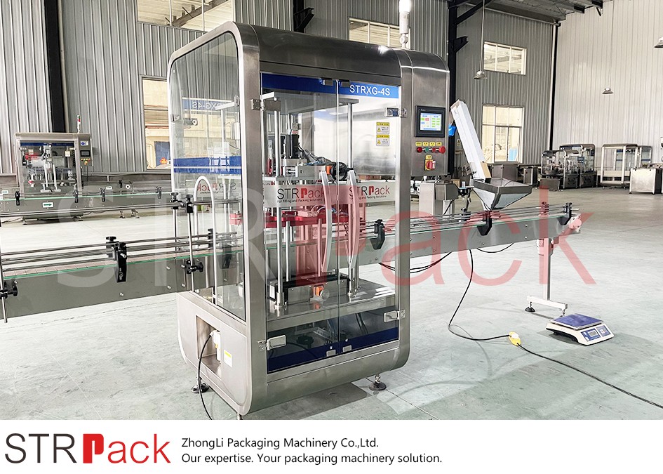 By combining gravity filling with weight feedback and servo-controlled screw capping, the line ensures high efficiency, stable performance, and product safety throughout the packaging process.