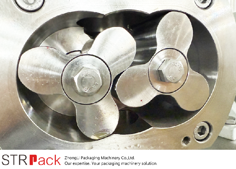 The image shows a lobe pump which used on our rotory pump filling machine.